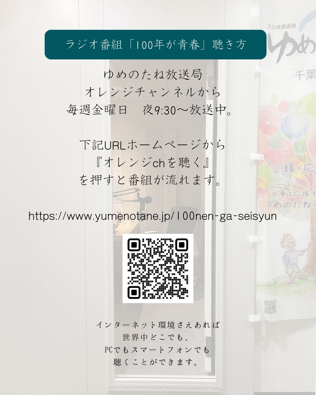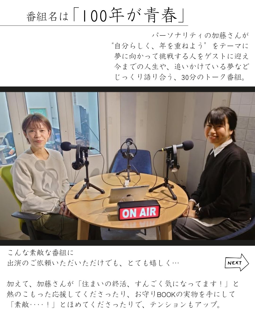 先週、出演させていただいたラジオ番組「100年が青春」が、再放送されることになりました。