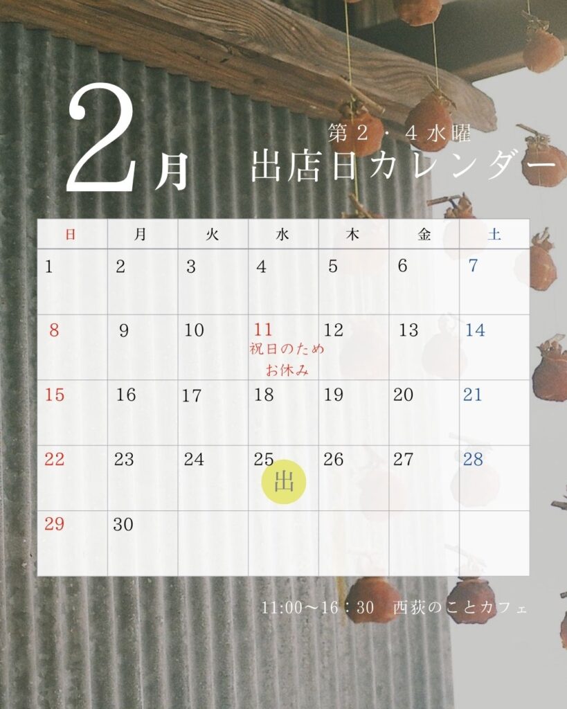 2月の出店日は、第4水曜日の2月25日(水)のみになります。